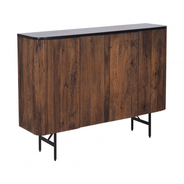Featuring a matte blackened metal base, myriad fine details in the surface and an organic live edge along its spacious cabinet doors, this sideboard is a thoroughly modern piece. Whether you have an eat-in kitchen, an open loft or a formal dining room, our mango wood sideboard provides ample space for dishware, linens, and more while setting a swanky tone for weekend brunches and dinner parties.