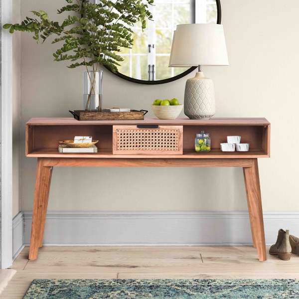 Featuring a deep drawer and two shelves, this handsome console perfectly combines style and functionality. "